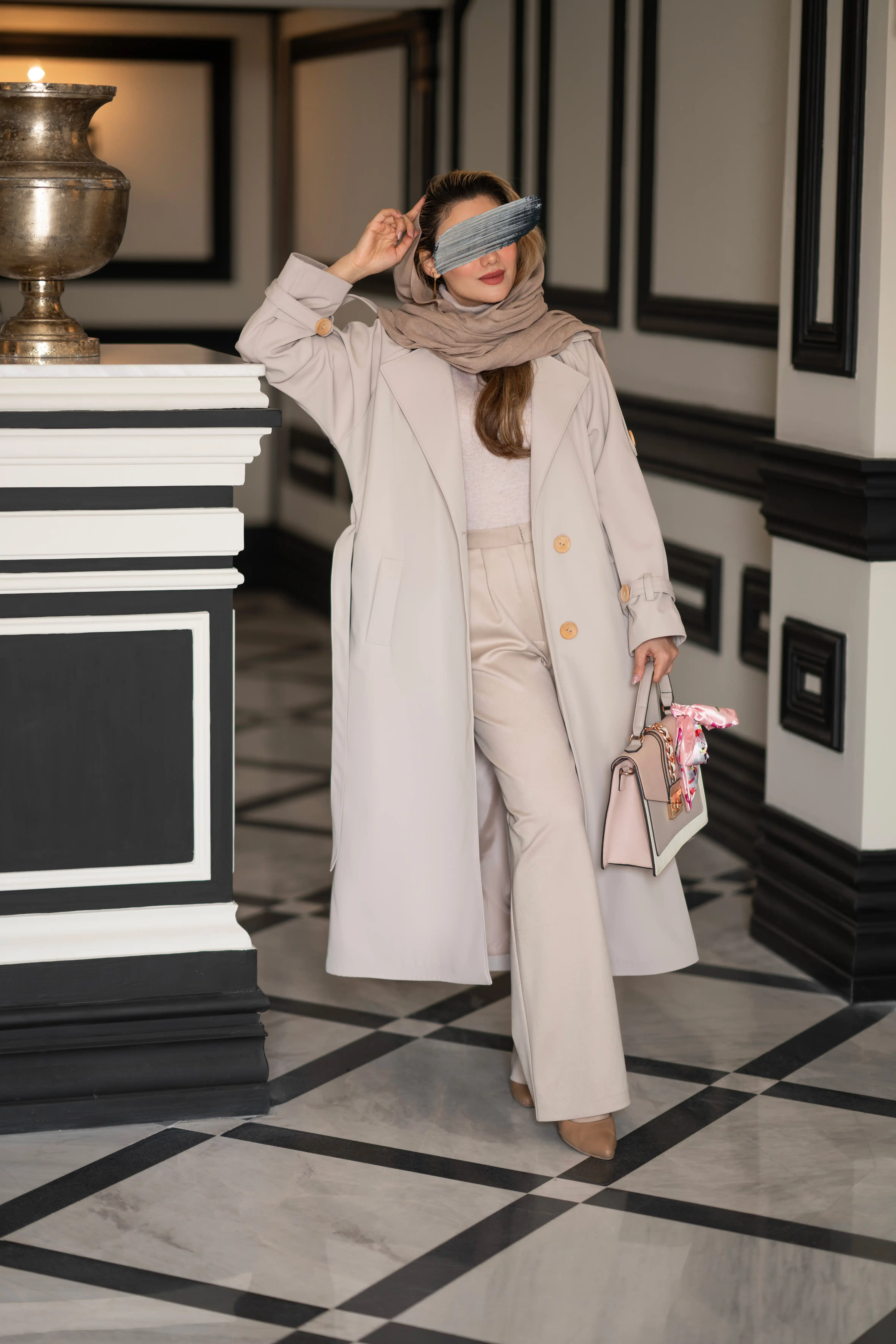 در نگاه اول، رنگ کرم استخوانی این بارانی توجه را جلب میکند؛ رنگی خنثی، پاک و همیشهمدرن که در هر فصلی و با هر استایلی هماهنگ میشود. اما وقتی آن را میپوشید، تازه متوجه میشوید که زیبایی اصلی این کار در کیفیت پارچه و دوخت آن پنهان شده است. پارچهی کتانِ انتخابشده برای این مدل، بافتی مستحکم و در عین حال لطیف دارد؛ پارچهای که هم ظاهر مینیمال میسازد و هم برای روزهای سرد و بارانی پاییز، بهترین همراه است.